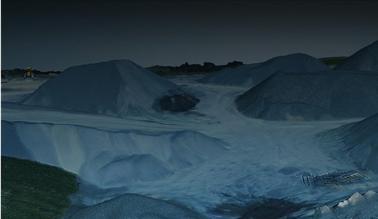 堆體測量的應用范圍非常廣泛,礦山、火電廠,建筑工程施工過程中的土堆沙堆計量,港口碼頭的散裝貨物估算,還有糧倉里的糧堆估算,這些都離不開堆體測量技術。目前的堆體測量,主要依靠全站儀、盤煤儀、GPS等測量儀器對堆體進行測量,相較于更早之前的完全依賴人工使用皮尺丈量,這些測量手段已經有了長足的進步。但是,如今有著更為高效、高精度的測量方法:使用無人機測繪并建模。無人機可以預設航線,在作業區域上空自動作業采集數據,采集完數據后可導入啟飛應用自主開發的GIS系統,一鍵生成點云及三維模型數據,并據此進行空間距離、體積的測量,或者進行斜面等不規則堆體面積的模擬測量,為工程建設規劃和生產作業等提供精確數值參考。